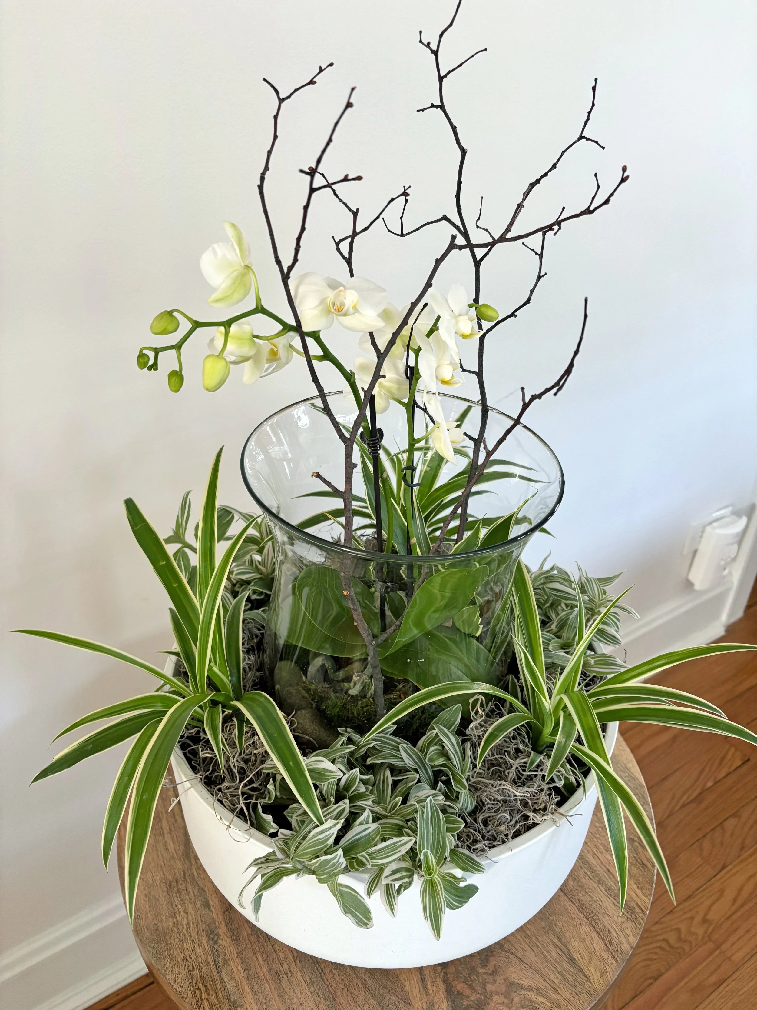 Melding fresh flowers with living plants in stunning pieces that thrive beyond your typical flower arrangement and keep bringing you joy through the seasons.